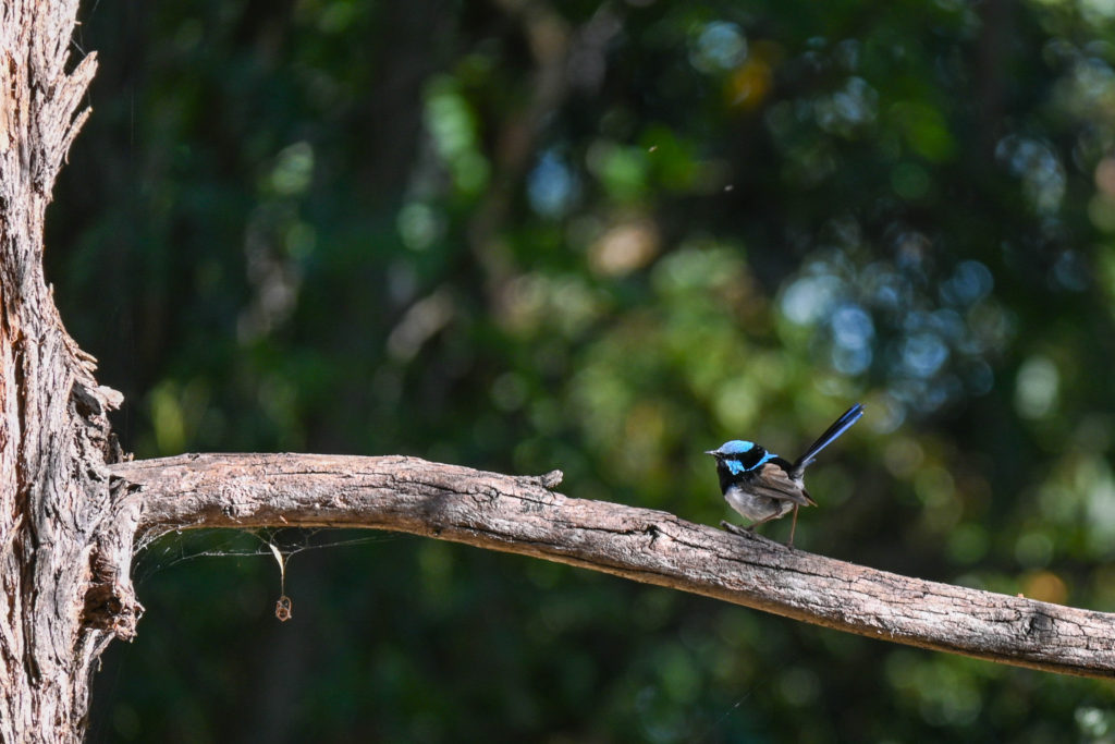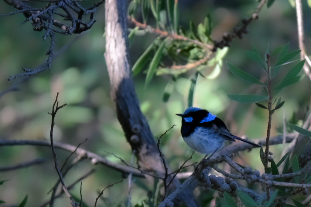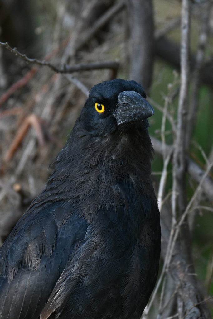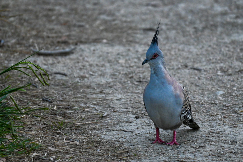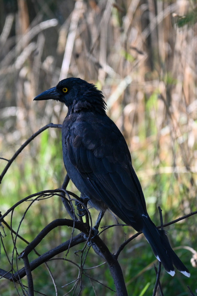 The Purple Swamphen looking for some breakfastThe Superb Fairy Wren before it flits awayThe Black Currawong giving a glareCrested Pigeon
