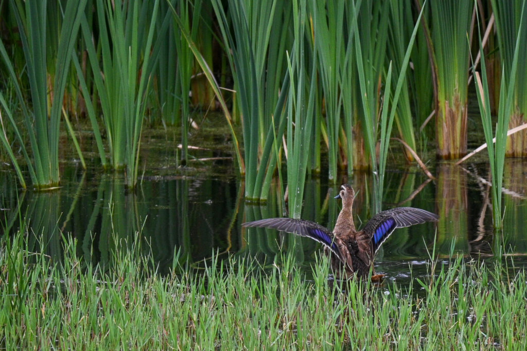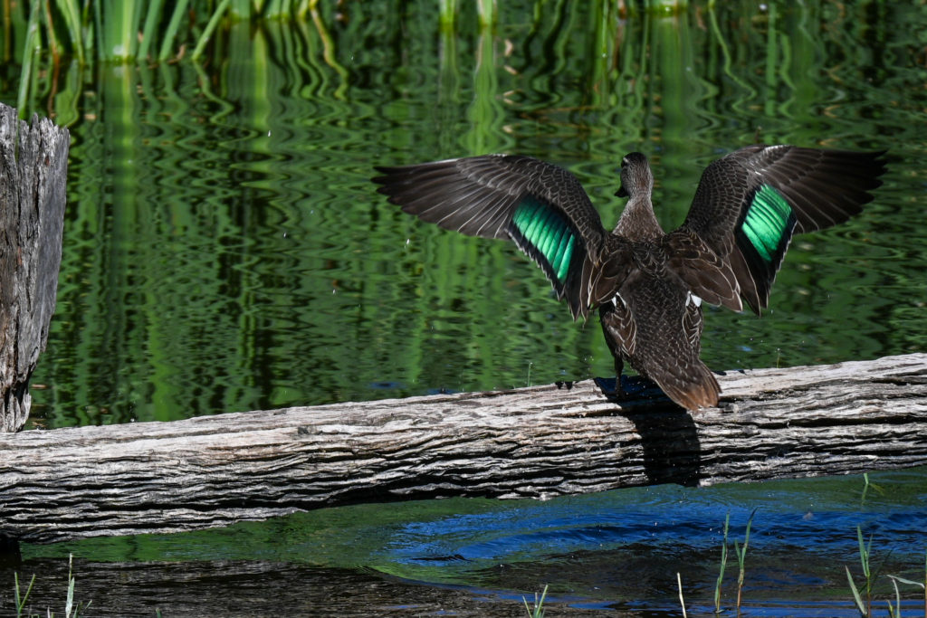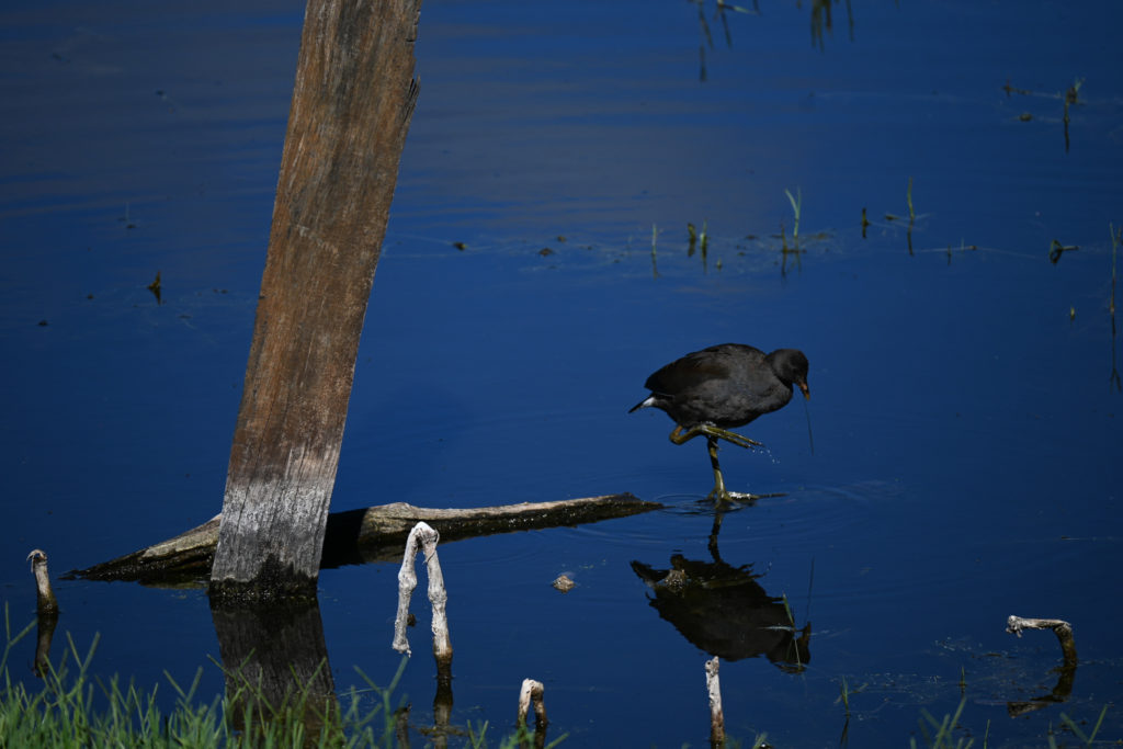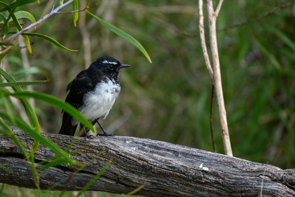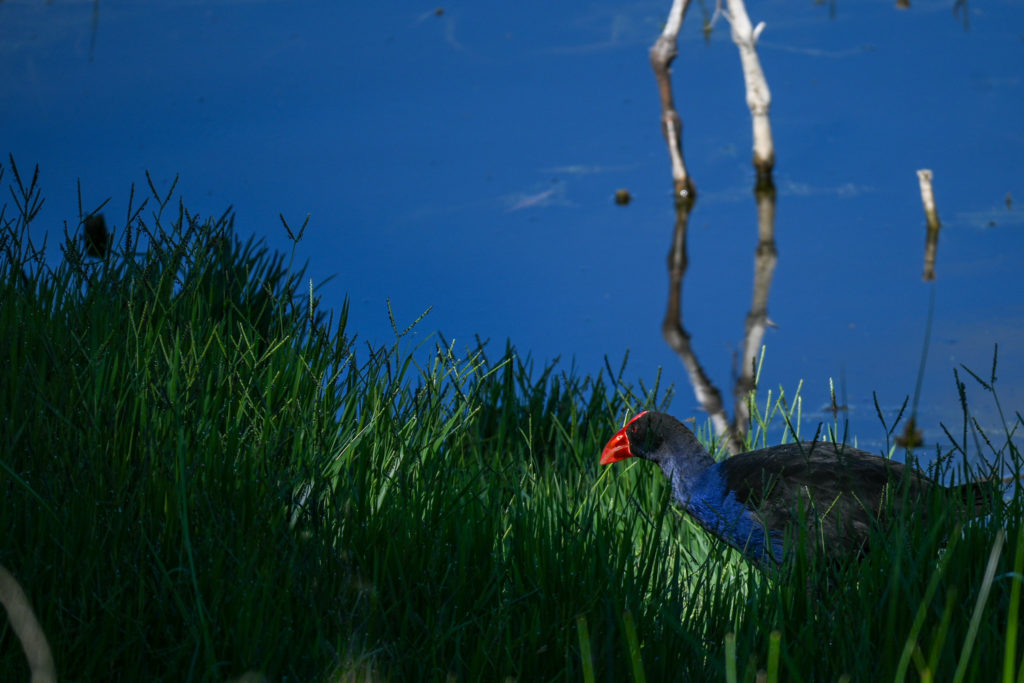 The Purple Swamphen looking for some breakfastThe Superb Fairy Wren before it flits awayThe Black Currawong giving a glareCrested Pigeon